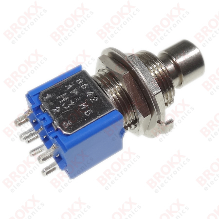 Robuuste drukschakelaar die ook te gebruiken is als voetschakelaar in gitaar effecten pedalen. 2-polig/dubbel wisselcontact (AAN-AAN / 2 stabiele...