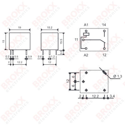 19 x 15,5 x 15,5 mm (l x b x h)
