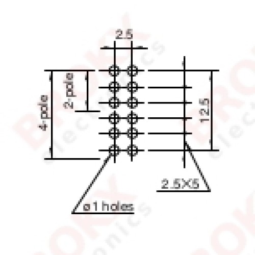 Drukknop schakelaar met een viervoudig wisselcontact geschikt voor printmontage