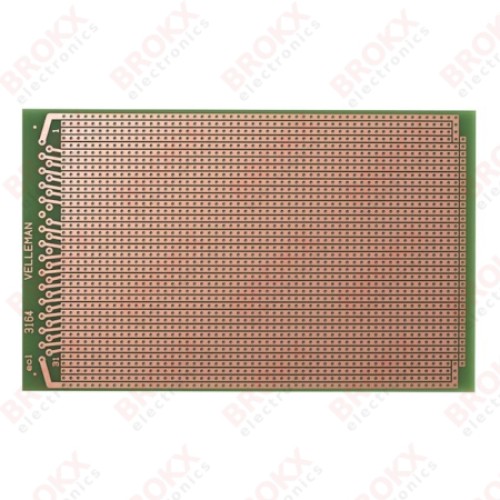 Experimenteer printplaat 160 x 100 mm - enkelzijdig - materiaal: Epoxy FR4 - raster 2,54 x 2,54 mm - 1 mm gaten - dikte 2 mm