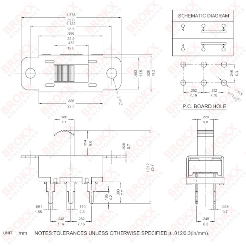 Schuifschakelaar AAN-AAN (DPDT)