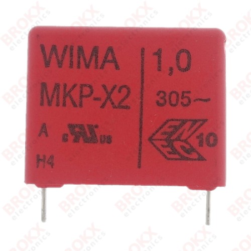 MKP polypropyleen X2 condensator - 1 uF 305 VAC - steek 22,5 mm - 10% tolerantie - 11 x 21 x 26,5 mm