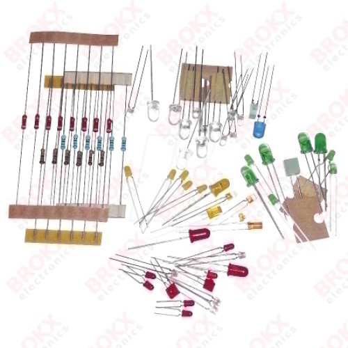 Verschillende maten en vormen, ongeveer 50 LED's en 20 weerstanden