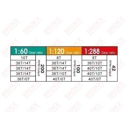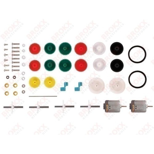 - inhoud: 2 motoren, 3 sets met tandwielen, metalen assen, versnellingsbak en andere accessoires
