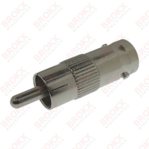 Adapter voor het aansluiten van een mannelijke BNC connector op een vrouwelijke Tulp (RCA/Cinch) aansluiting