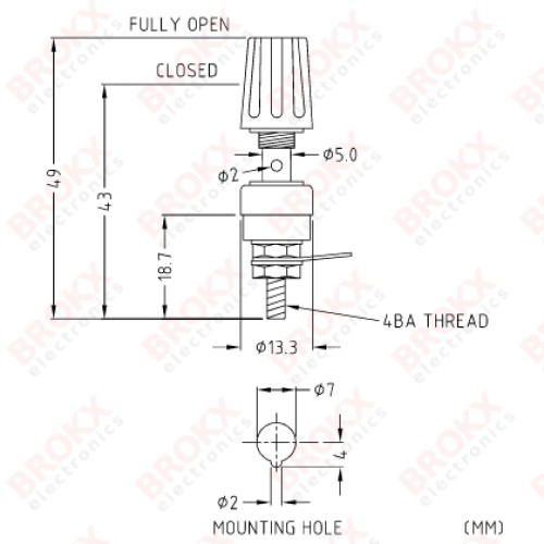 Ø2 mm opening voor invoer vanaf de zijkant