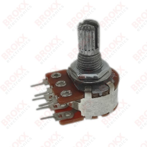 10 kΩ - 300 graden draai - 6 mm as gekarteld - lineair - stereo