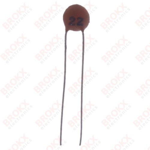 Keramische condensator - 22 pF 50 V - steek 2,54mm - temperatuur bereik -25...85 ºC - RoHS-compliant