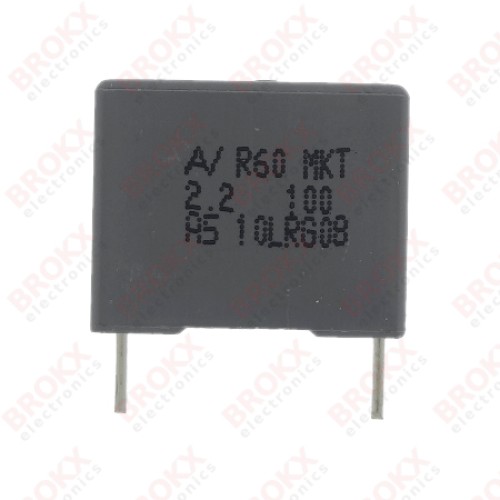 polyester condensator - 2,2 µF 100V - steek 15 mm - 10% tolerantie - 8 x 14 x 18 mm RoHS compliant