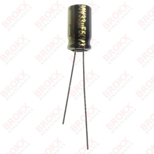 Electrolytische Condensator - 33 µF 50 V 105 ºC - Radiaal Ø6,3 x 11,2 mm - steek 2,5 mm - tolerantie ±20% - RoHS-compliant