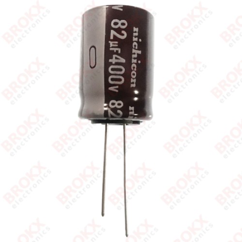 Electrolytische Condensator - 82 µF 400 V 105 ºC - Radiaal Ø18 x 25 mm - steek 7,5 mm - tolerantie 20%