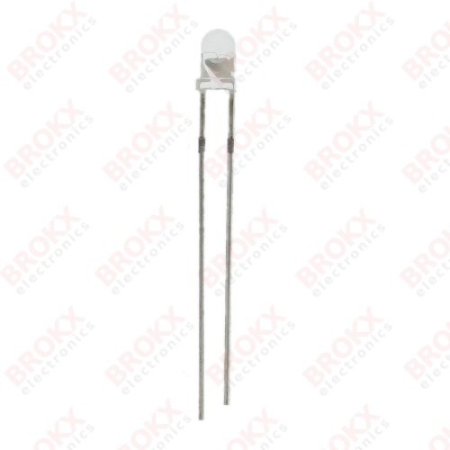diameter 3 mm - 12 V 10 mA (geen voorschakelweerstand nodig) - helderheid 2180 mcd - max inkijk hoek 30º - kleur blauw - golflengte 470 nm - steek 2,54 mm - RoHS compliant