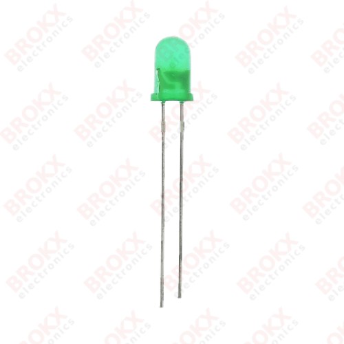 diameter 5mm - helderheid 8-20mcd - max inkijk hoek 60º - voltage 12V - kleur groen - golflengte 568nm - steek 2,54mm