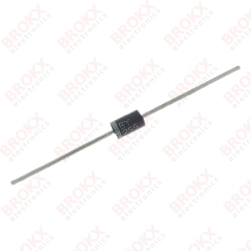 Diode BY255 - max 3 A - max blokkeerspanning 1,3 kV - DO201 - RoHS-compliant