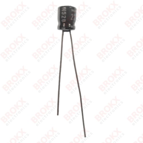Electrolytische Condensator - 22 µF 6,3 V 105 ºC - Radiaal Ø4 x 5 mm - steek 1,5 mm - tolerantie 20 % - RoHS-compliant